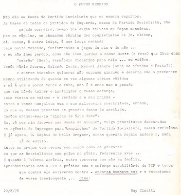Por este tempo, estava de muita má disposição com o Partido Socialista.