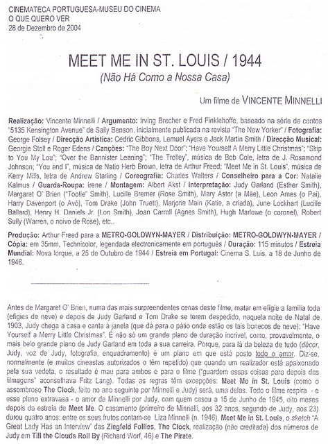 Meet Me In St. Louis, que em português teve o ridículo título de Não Há como a Nossa Casinha, é um dos meus filmes de Natal, e, estatelando-me no costumeiro lugar-comum, um dos filmes que levaria para a tal ilha deserta.